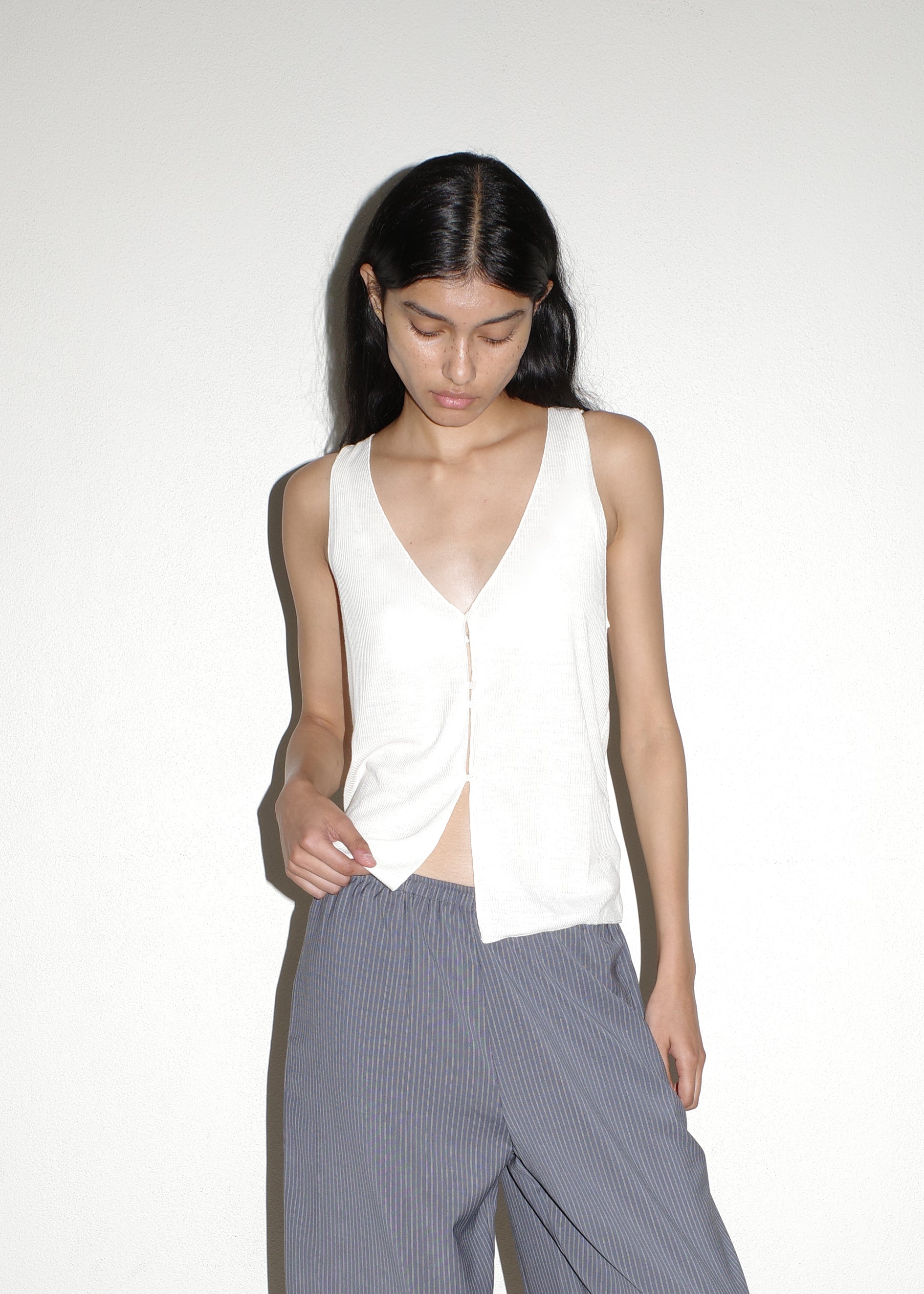 the button up knit tank by Deiji Studios in off white